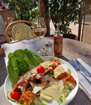 ei en de croutons toe. Besprenkel met de overgebleven dressing en bestrooi met extra Parmezaanse kaas.